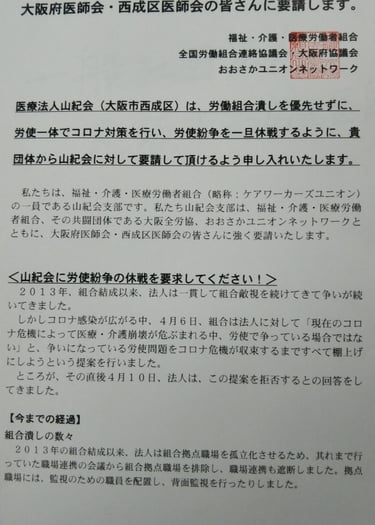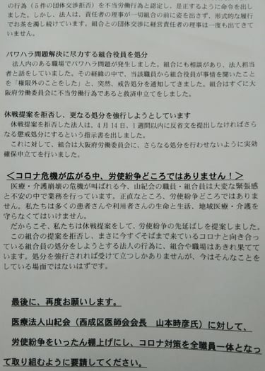 以下が、法人が名誉毀損の損害賠償請求している組合ビラ。