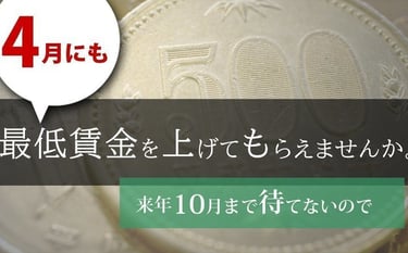 【署名】『来年10月まで待てないので、4月にも最低賃金を上げてもらえませんか。署名やコメントを募集中』