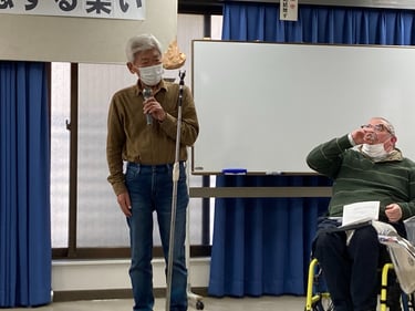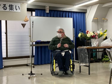 今回の<集い>では、参 加された4名の顧問(石田さ ん、山下さん、福田さん、 但馬さん)からそれぞれこ れまでの活動をふり返って 語 っ て い た だ い た。し か し、4名のみなさんも聞いて いる私たちの方もやはり気 になるのは、世代交代とジェ ンダー平等という今後の課題 にある。後半では、そのよ うな次世代を担う人たち(そ の中の何人かは会場正面に 貼られた「since1991.2.2」 というバナーを指さして「こ のとき自分は中学生だっ た」「ぼくはランドセルを振り 回していた」と口々に言っ ていた!)からも未来に向け た思いのたけが語られた。 世代交代が眼前にある、と いう覚悟が彼らの言葉にも 滲み出ていた。