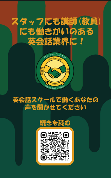 あなたの職場で困った事や「これってどうなの?」といったことはありませんか?General Union では英会話業界をより働きやすい場所にするべく、様々な問題に取り組んでいます。ハラスメントやいじめ、給与やお金に関すること、日々働きながら感じた小さな疑問など、みなさんの声をお寄せください。